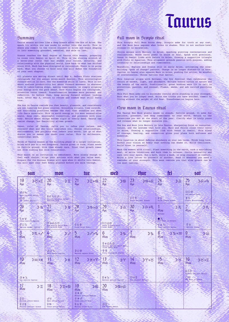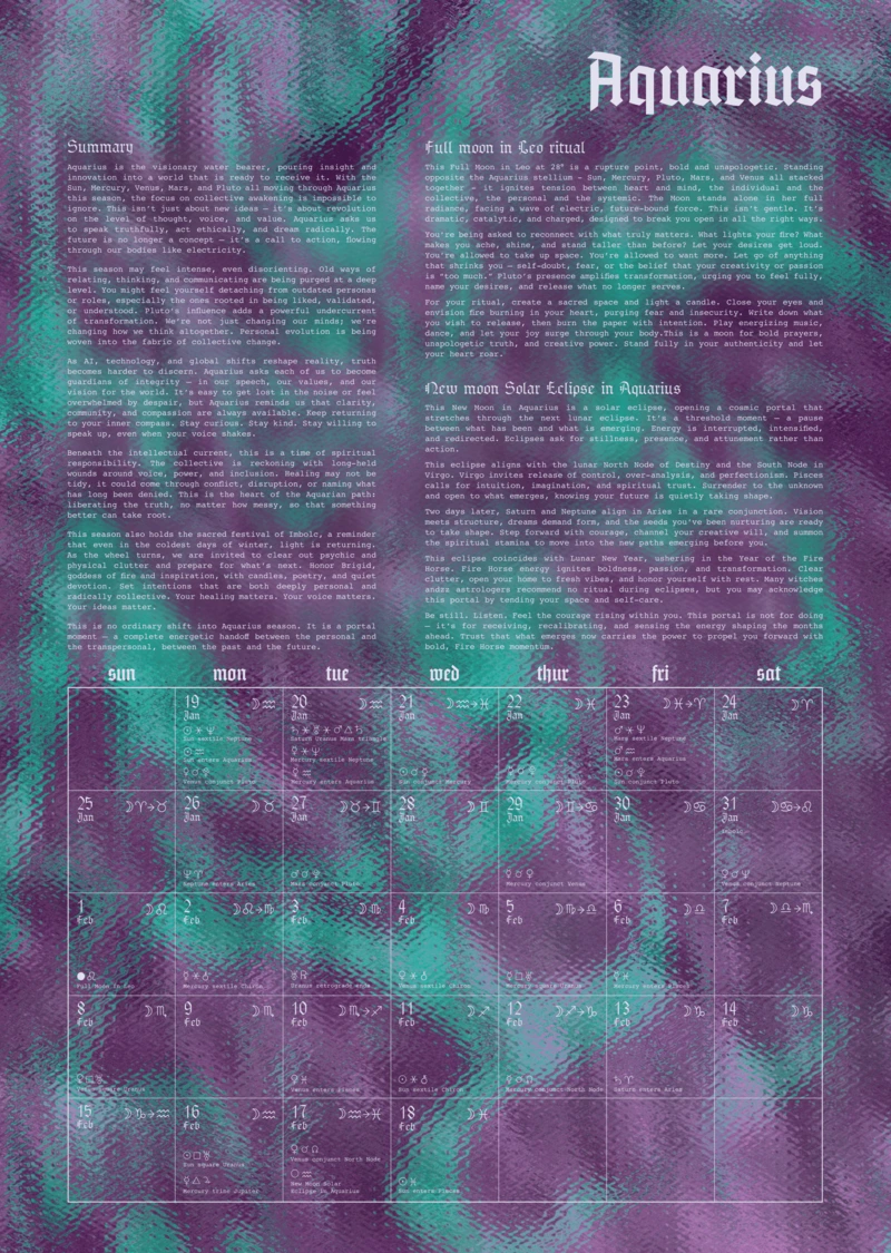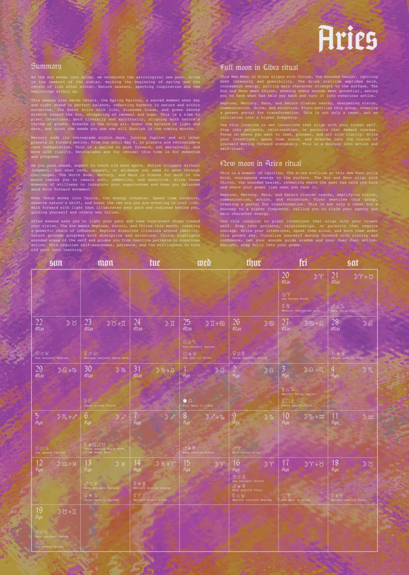 This calendar gives you the space to release karmic cycles, integrate shadows, and align with the cosmos. Move beyond fear-based or watered-down astrology with tools to track lunar cycles, eclipses, and planetary shifts with clarity.